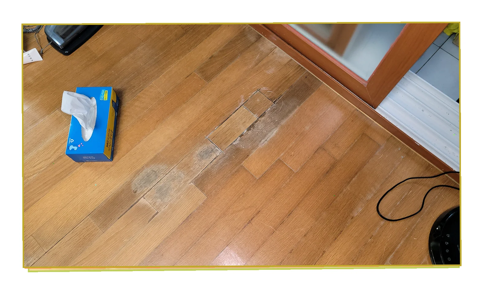 벽면과 바닥 전체에 습기가 퍼져있는 상황이었습니다.