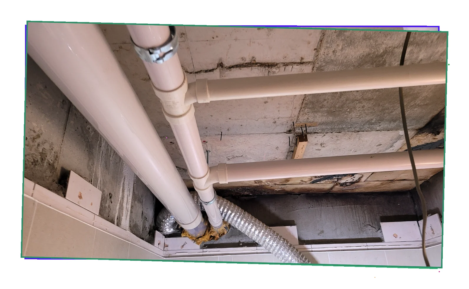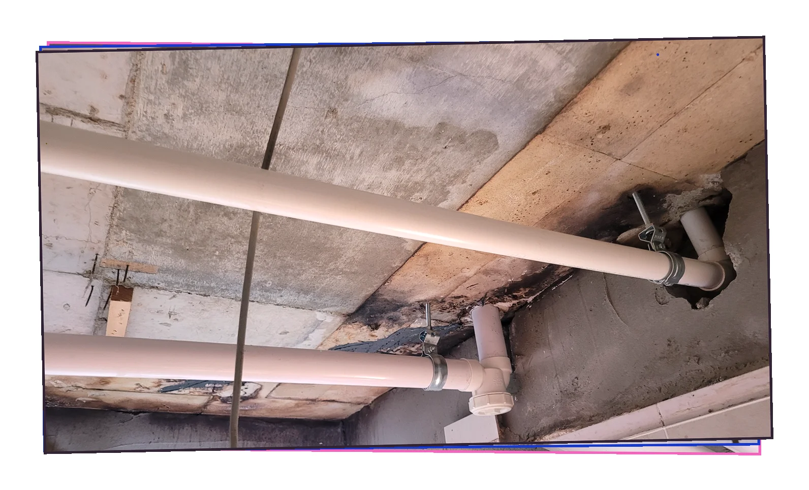 내부 배관을 점검한 결과 냉수관 이음부의 균열 에서 누수가 시작되었음을 확인했습니다.